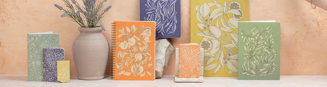 Mellom lavendel, sitrus og oliventrær fanger de delikate motivene varmen fra en middelhavshage om sommeren. Denne nye serien med papirvarer og kontortilbehør inviterer til en sanselig opplevelse, der fargene og duftene som kunstneren har forestilt seg, smelter sammen med mykheten i et tidløst øyeblikk.