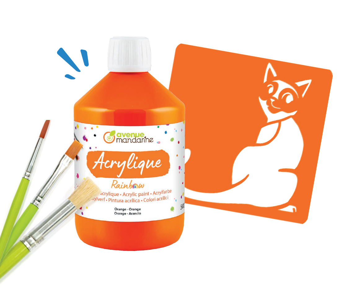 My Mandarine tilbyr et fargerikt sortiment av maling og maleverktøy til både små og store kunstnere. Serien Rainbow består av akrylmaling, pensler, ruller og sjablonger som gjør det enkelt å utforske maling på papir, papp, tre, lerret og andre overflater.