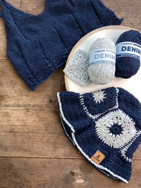 Myboshi Denim er et lett og mykt bomullsgarn som har et utseende inspirert av denimstoff. Garnet består av en kombinasjon av resirkulert bomull fra denim og økologisk bomull, noe som gir en bærekraftig kvalitet med god slitestyrke og naturlig pusteevne. Den karakteristiske denimlooken gir et moderne uttrykk i både strikkede og heklede prosjekter, samtidig som garnet føles behagelig og lett mot huden.
