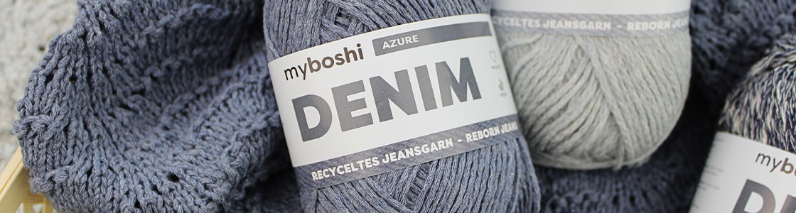 Myboshi Denim er et lett og mykt bomullsgarn som har et utseende inspirert av denimstoff. Garnet består av en kombinasjon av resirkulert bomull fra denim og økologisk bomull, noe som gir en bærekraftig kvalitet med god slitestyrke og naturlig pusteevne. Den karakteristiske denimlooken gir et moderne uttrykk i både strikkede og heklede prosjekter, samtidig som garnet føles behagelig og lett mot huden.
