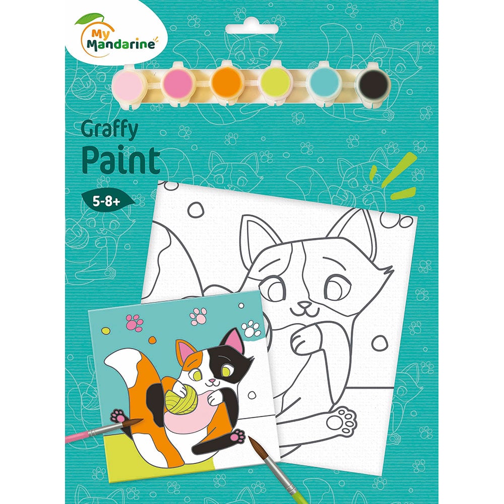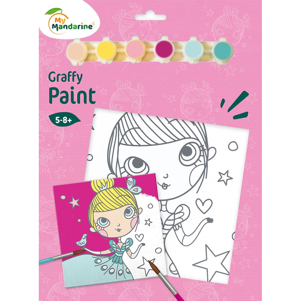 Maling, pensel og maleplate med motiv