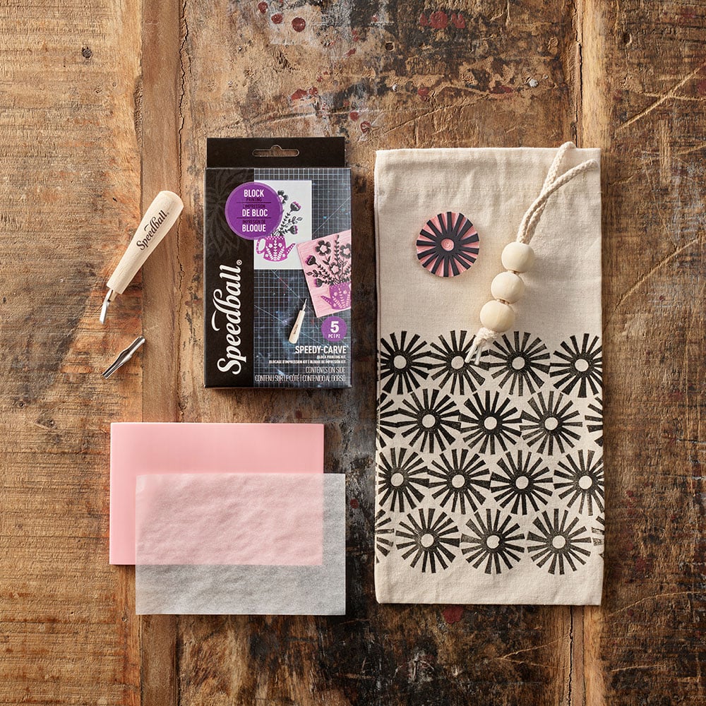 Startsett til linoleumstrykk på stoff