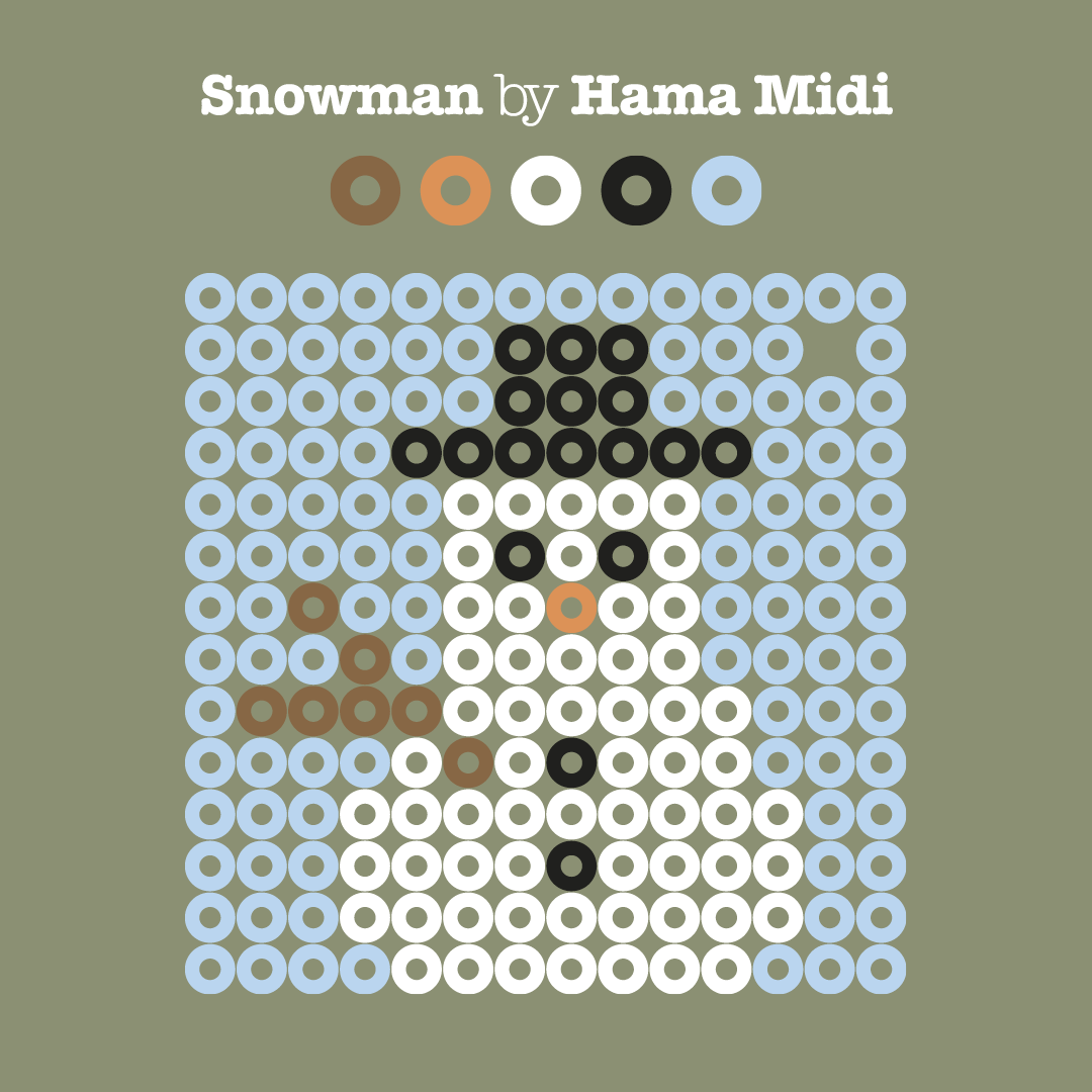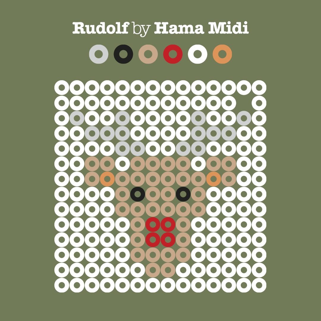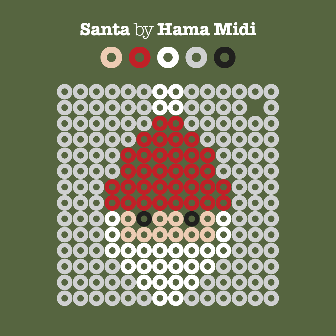 For å lage disse figurene trengs liten firkantet piggplate (220), og Hama MIDI-perler i utvalgte farger. Motivene på bildene viser klassiske julefigurer som reinsdyr, juletre, snømann, nisse og julekule. Enkle former som passer fint for både barn og voksne å lage.