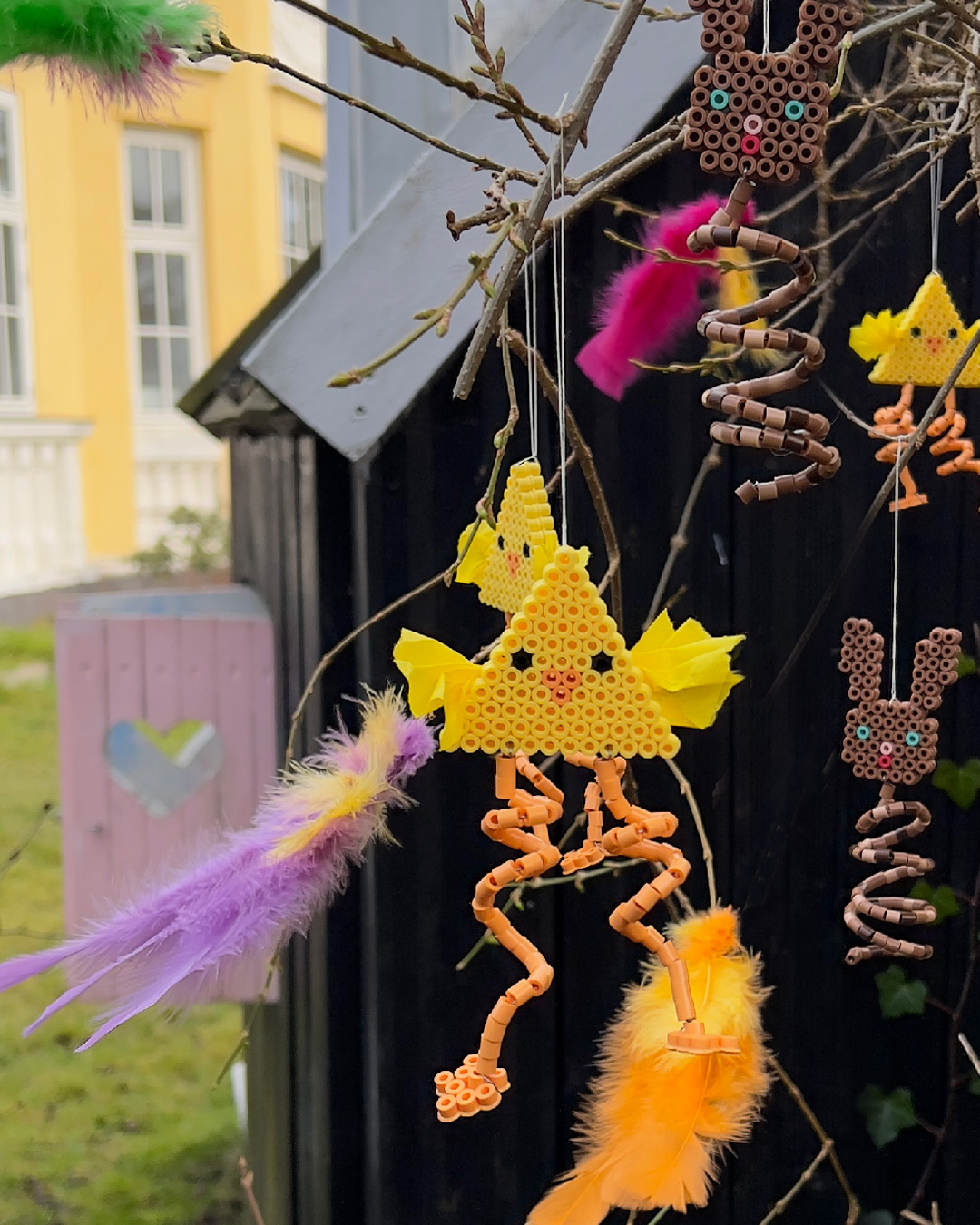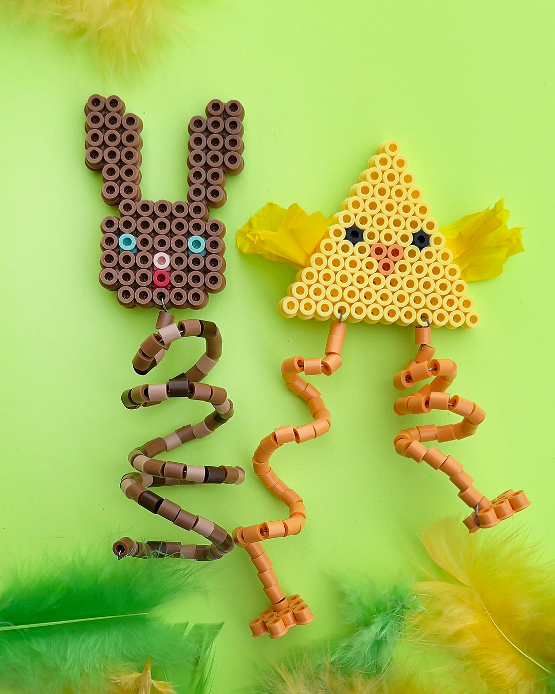 Lag bevegelig og leken påskepynt med Hama Midi perler. Disse søte kyllingene og kaninene får ekstra liv med spiralfjærer som gjør at de spretter og beveger seg når de henger på en gren. Perfekt som dekorasjon på påskeris eller som en del av et kreativt verksted før påske.