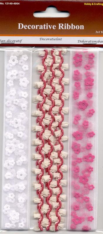 Pyntebånd scrapbooking 3ass. rosa/hvit
