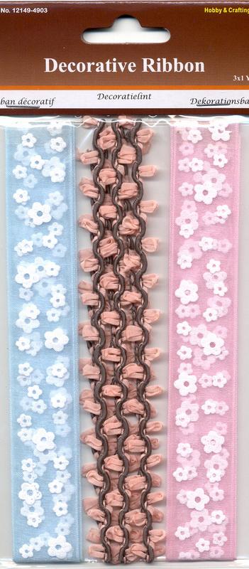 Pyntebånd scrapbooking 3ass. rosa/l.blå